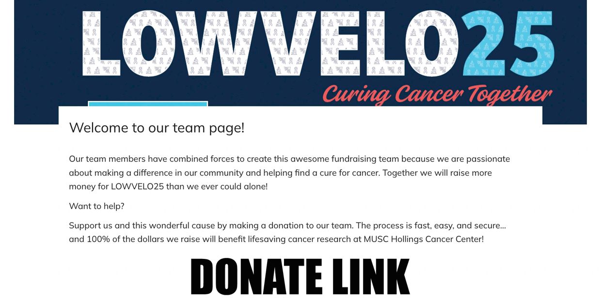 Our team members have combined forces to create this awesome fundraising team because we are passionate about making a difference in our community and helping find a cure for cancer. Together we will raise more money for LOWVELO25 than we ever could alone!